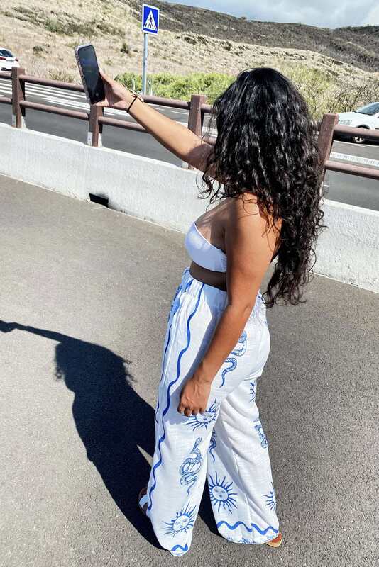 Conseil mode : Ce pantalon se mari parfaitement avec un top uni simple ou une chemise aux couleurs neutres telles que le blanc, le beige, le noir ou encore le même bleu que les motifs